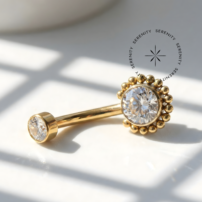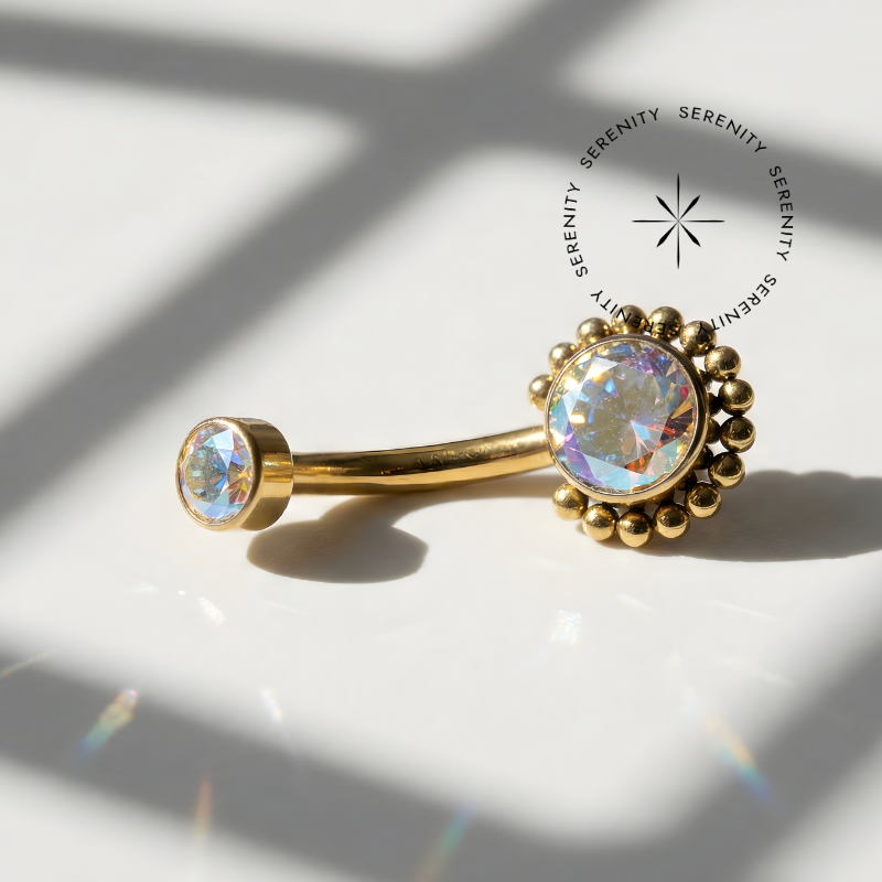 Descrição: Ideal para perfuração de umbigo, oferecendo um ajuste confortável e seguro. É uma joia cheia de estilo. O design curvado da haste permite um melhor encaixe na anatomia do corpo, minimizando o risco de irritação. Além disso, é fácil de limpar e manter, o que é essencial para garantir a saúde da perfuração.