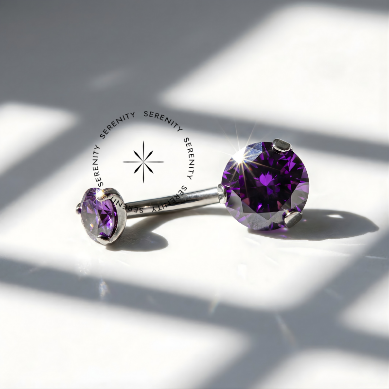 TN89 Piercing Umbigo Zircônia Roxa Titânio ASTM F136