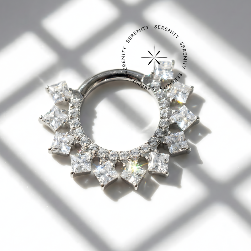 Descrição: Ideal para septo, daith, cartilagem, lobulo, helix, entre outros, oferecendo um ajuste confortável e seguro. É uma joia cheia de estilo