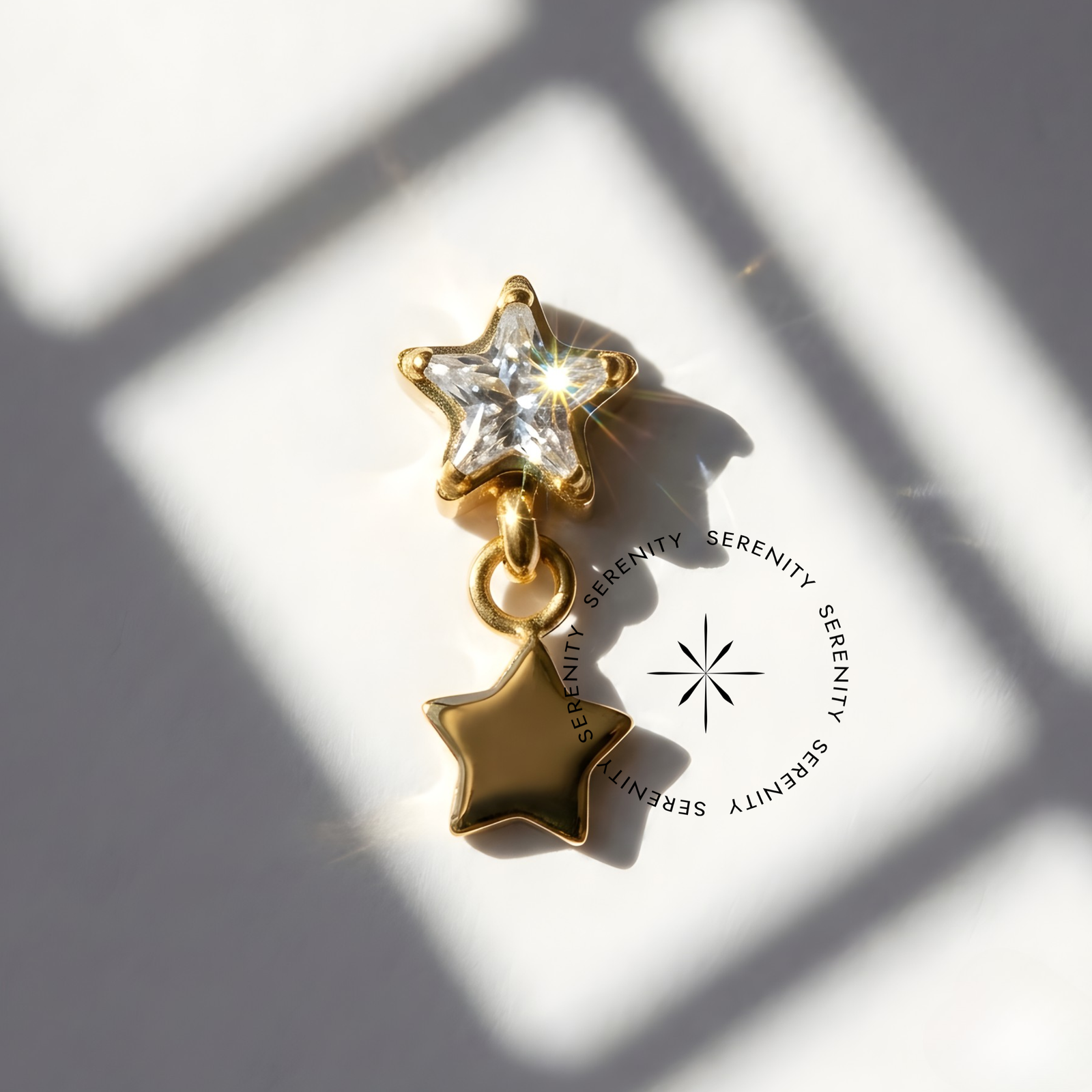O Topo Estrela com Pingente é uma joia que une a delicadeza do cristal com a modernidade de um pingente móvel. Com um design sofisticado e lúdico, esta peça foi criada para quem deseja um ponto de luz que acompanha seus movimentos, garantindo um visual dinâmico e cheio de personalidade. Cada detalhe reflete o cuidado da Serenity com a estética e a qualidade da alta joalheria.