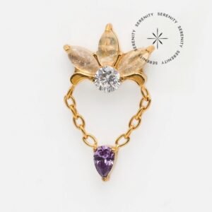 TN1764 Topo Big Flor CZ Cristal e Ametista Titânio ASTM F-136