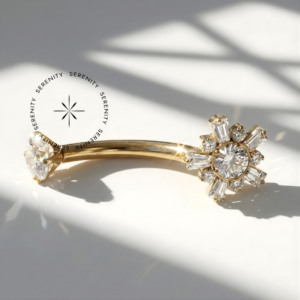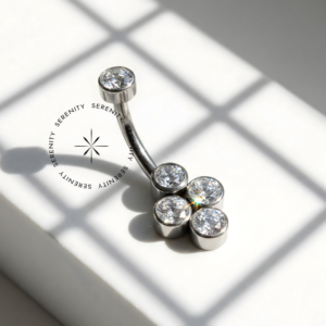 TN45 Piercing Umbigo 4 Zircônias Flat Titânio ASTM F136