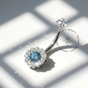 TN70 Piercing Umbigo Zircônias Azul Safira Titânio ASTM F136